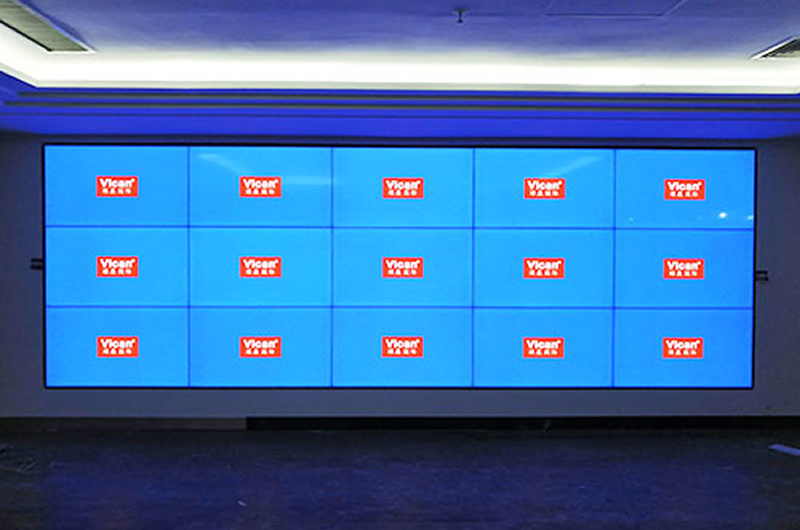 本次案例中,維康國際為煙臺國家電某大廳安裝一套55寸1.8mm液晶拼接屏,3x5拼接。