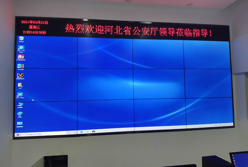 本案例中,維康國際為河北省某單位提供一套指揮中心大屏,由3x4拼接、55寸液晶拼接屏組成,液晶面板采用三星1.7mm原裝屏體,大屏高清顯示、產(chǎn)品性能穩(wěn)定,支持24x7小時長時間不間斷的運行模式。
