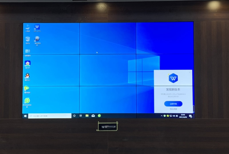 本案例中,維康國際為農(nóng)商銀行微山分行提供一套辦公室顯示大屏,由3x3拼接、46寸3.5mm液晶拼接屏組成,大屏幕顯示清晰,白平衡效果好。