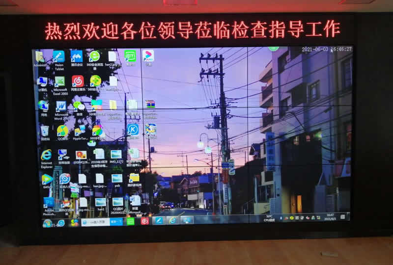 本案例中,維康國際為德州市齊河某派出所提供一套監(jiān)控拼接屏,由3x3拼接、55寸液晶拼接屏組成,如上圖所示。