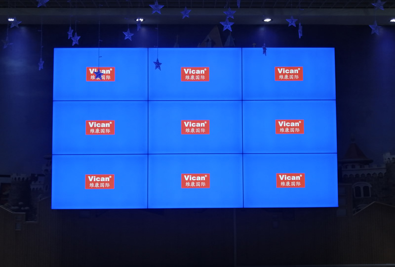 本案例中,維康國際為深圳寶安中心幼兒園提供一套高清顯示屏,采用3行3列、55寸液晶拼接屏,雙邊拼縫僅有3.5mm,有著很好的 大屏一體化顯示效果。
