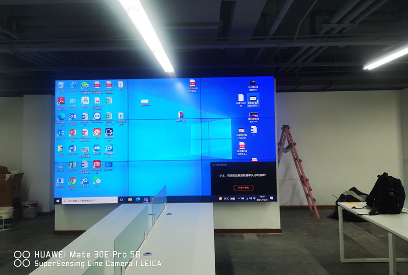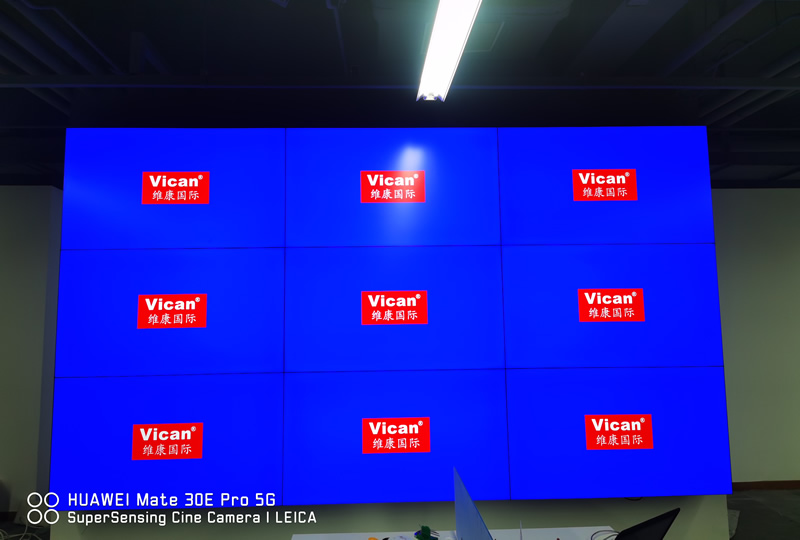 本案中,維康國(guó)際為北京中關(guān)村聯(lián)盟大夏某企業(yè)提供一套辦公室顯示大屏,采用3x3拼接的55寸液晶拼接屏,屏體采用LG1.8mm超窄邊液晶面板,畫面清晰亮麗,有著很好的一體化顯示效果。