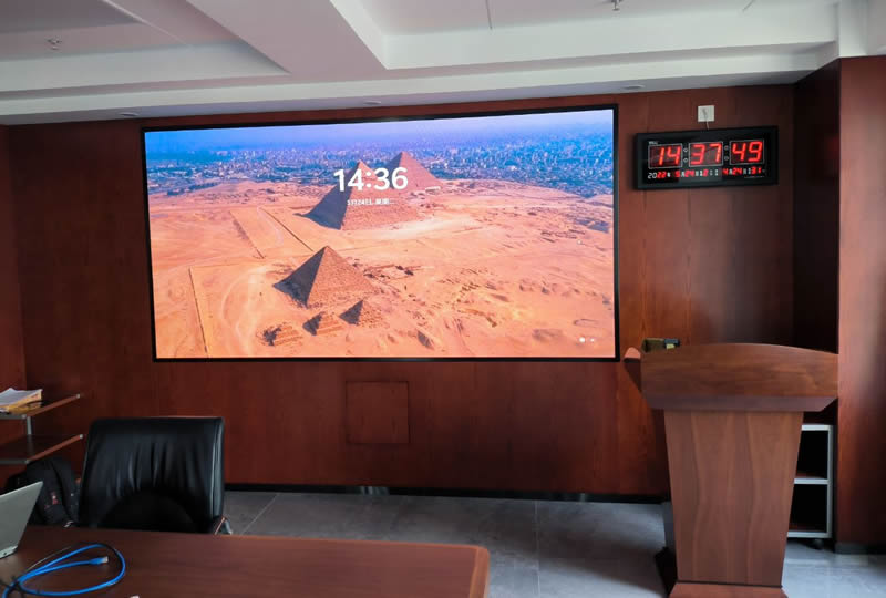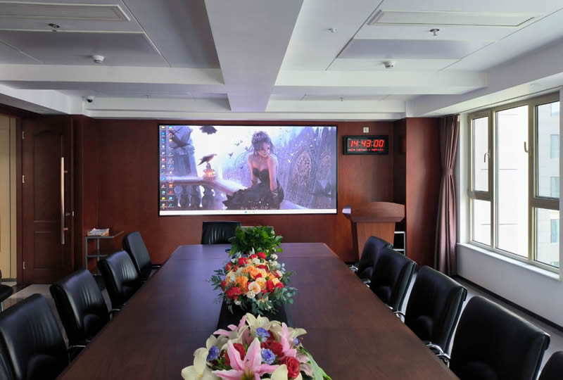 本案例中,維康國(guó)際佛山市某建材公司的會(huì)議室提供一套顯示大屏,采用P1.875小間距LED顯示屏,大屏幕顯示清晰,色彩好。