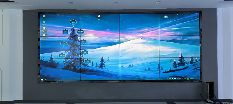 本案例中,維康國際為中建八局安圖縣某項(xiàng)目部提高一套會(huì)議室顯示大屏,采用3*4拼接、3.5mm拼縫的55寸拼接屏,壁掛式安裝,更顯美觀大氣。