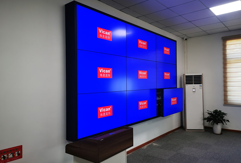 本案例中,維康國(guó)際為深圳市航天泛在科技園提供一套會(huì)議廳拼接屏,3.5mm拼縫的原裝面板,采用3*3拼接、前維護(hù)支架安裝加包邊處理,畫面顯示效果好,色彩鮮艷。