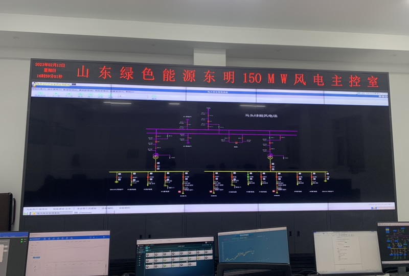 本案例中,維康國際為山東綠能公司提供一套監(jiān)控中心大屏,采用3行5列的55寸液晶拼接屏,用來實時顯示數(shù)據(jù)分析,大屏幕畫面清晰,視覺效果好。