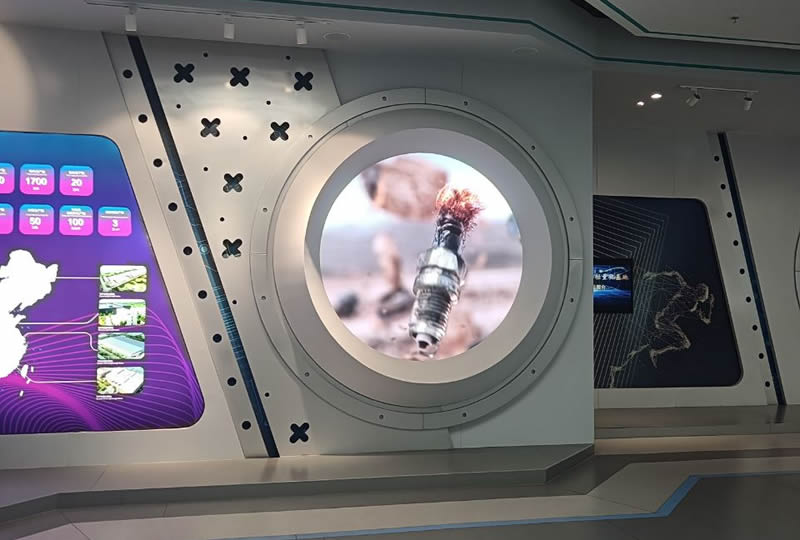 本案例中,維康國(guó)際為山東魏橋創(chuàng)業(yè)集團(tuán)的展廳提供了多套多形狀的LED顯示屏,如上圖所示,由梯形、圓形、長(zhǎng)方形拼接組成,大屏幕顯示清晰,視覺(jué)體驗(yàn)效果好。