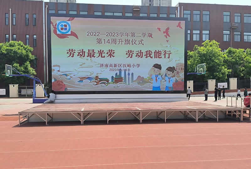 本案例中,維康國際為濟南市高新區(qū)某小學提供一套戶外舞臺LED顯示屏, 如上圖所示,超大屏幕顯示,大屏幕畫面一體化效果好,在強烈陽光下,畫面十分清晰亮麗。