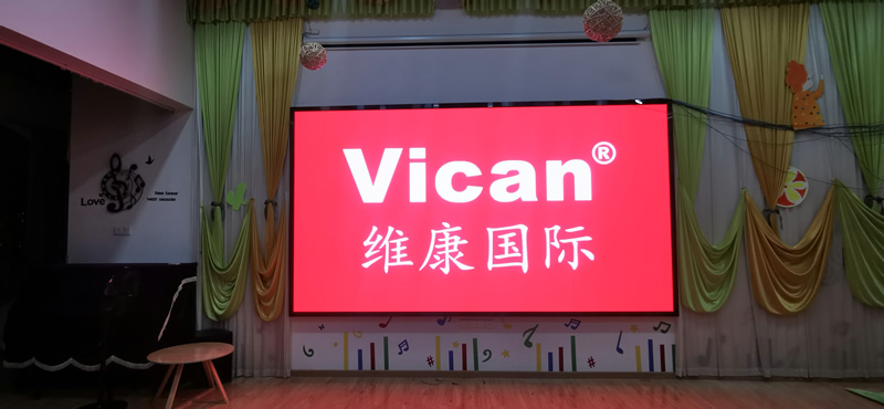 本案例中,維康國(guó)際為東莞市某幼兒園提供一套高清LED大屏,采用P1.86小間距LED系列,顯示面積約10平方米,大屏幕顯示清晰,一體化效果好。
