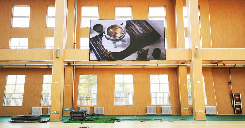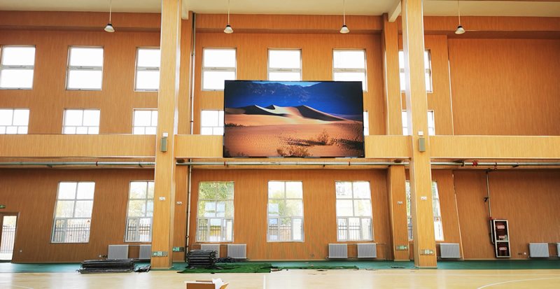 本案例中,維康國際為格爾木市某室內(nèi)籃球場提供一套LED大屏,采用全彩P2.5系列,大屏幕面積約20平方,顯示清晰、色彩鮮艷。