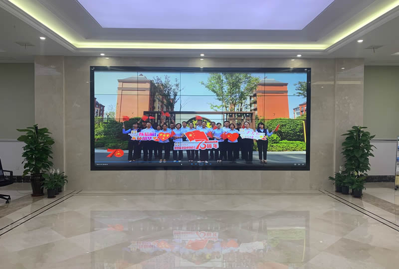 這套大屏采用4x5、55寸液晶拼接屏,雙邊拼縫為3.5mm,主要用來發(fā)布視頻或信息公告。