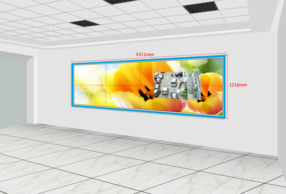 2x4掛墻,49寸液晶拼接屏尺寸效果圖
