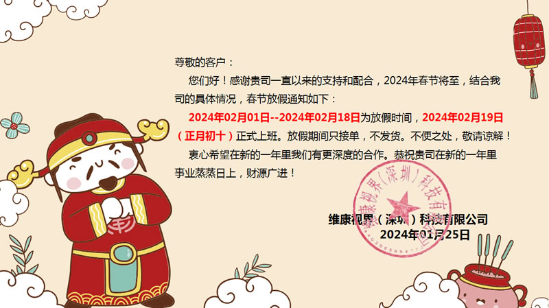 【維康國際】2024年春節(jié)放假通知