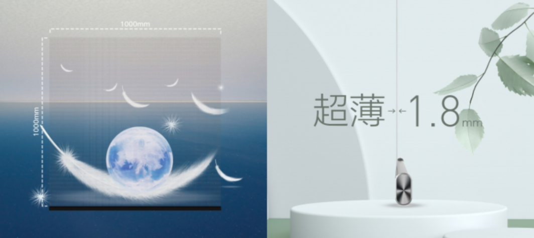 整屏透明無框架;  無縫大面積拼接; 背面隱形無泛光 。